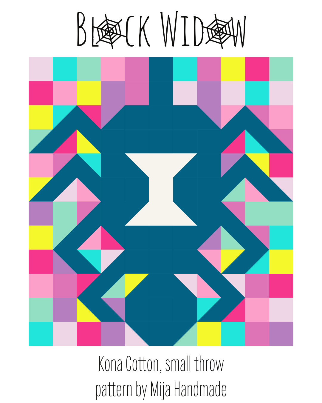 The Block Widow pattern releases in just a few days, on September 22! And I wanted to make sure you have plenty of fabric inspiration for this quilt. The bigger the quilt size, the more FQs are needed to make the quilt. If you love pulling in lots of fabrics, go for the large throw, and the scrappy spider version. If you like using fewer fabrics, I’d recommend the small throw, one-color spider version. This way, you can focus on a scrappy background and easily pick out a contrasting fabric for the spider.