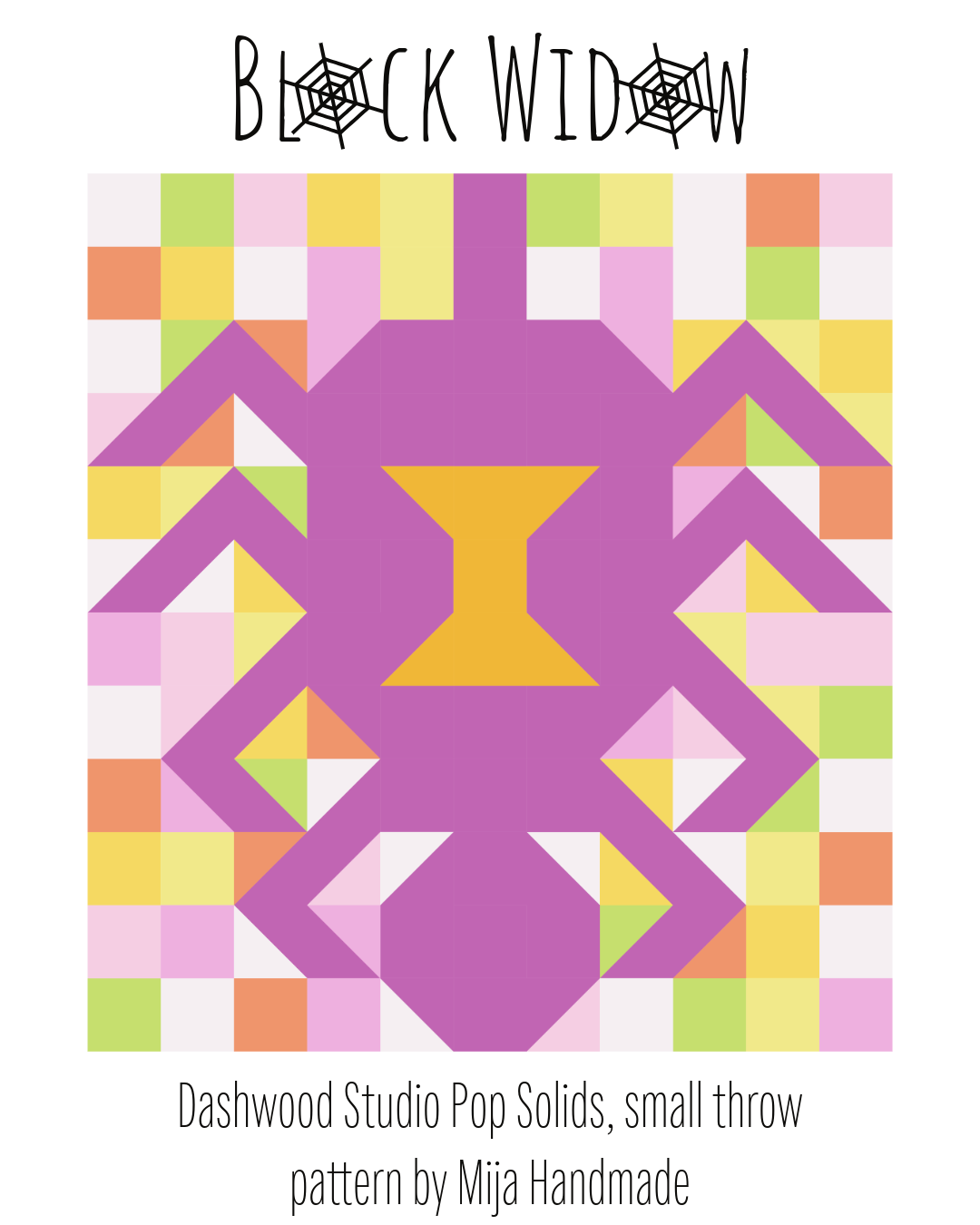 The mockups I’ve put together below are all the large throw size, with a solid spider. Make sure you save the version you like (hello Pinterest!) so you can reference when you head to your local quilt shop this weekend! Don’t forget, you can color in your own version with the digital coloring page over at QuiltInk.