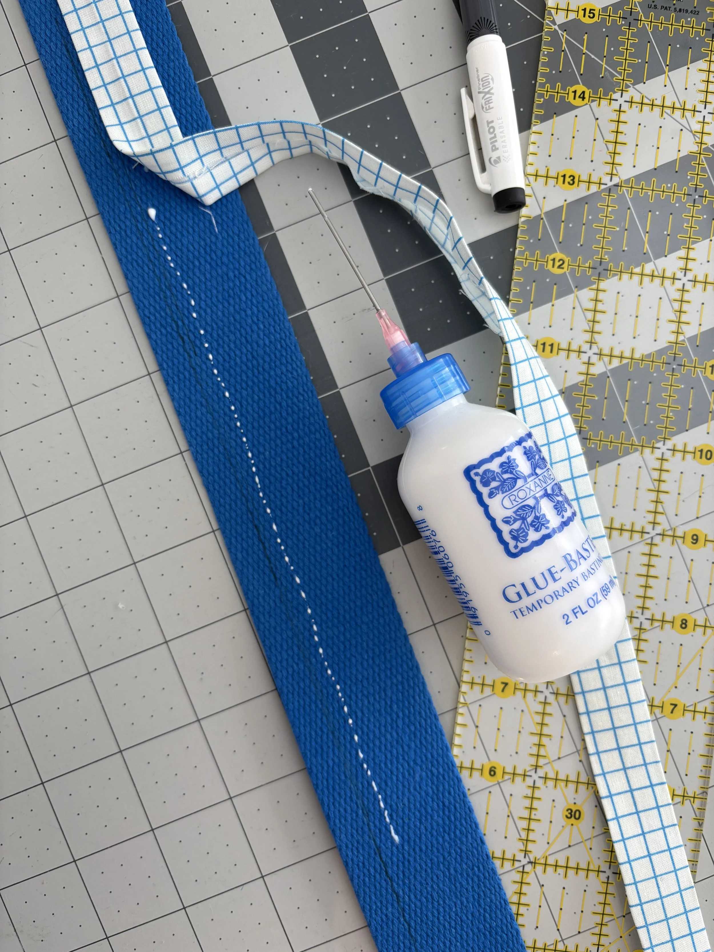 Optional: Draw a line ¼" in from the long edge of the webbing. I tried this at first but found it to be unnecessary.