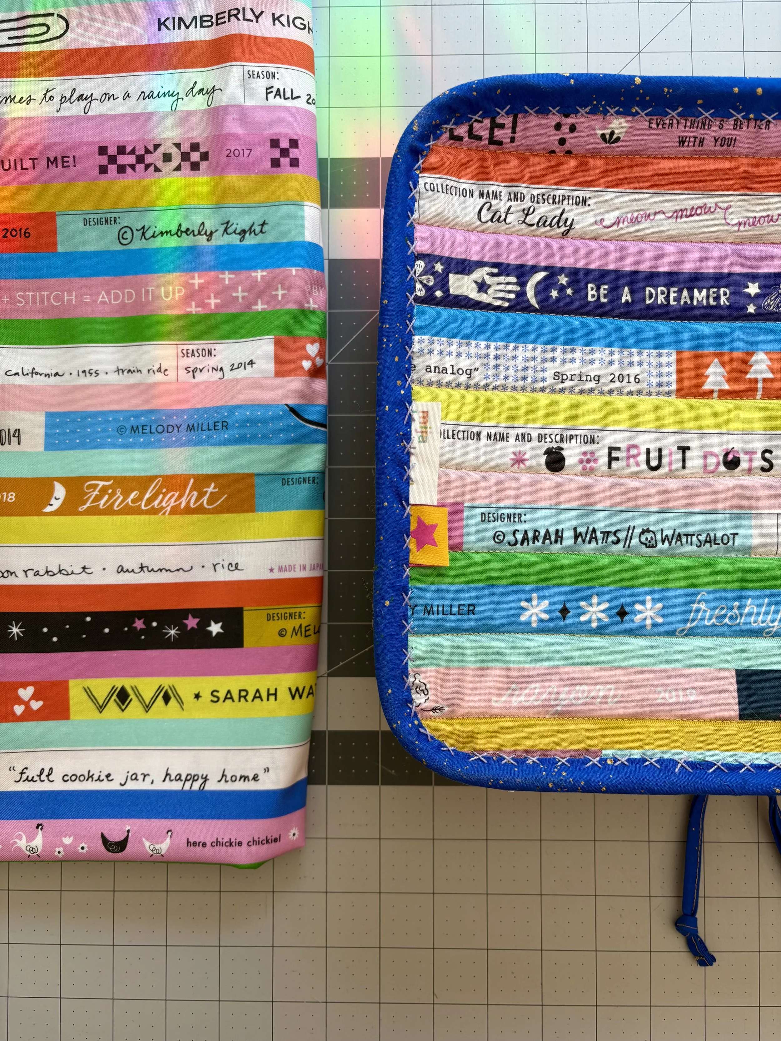 If you are going to add a sew-in label to your project, I would recommend adding it to the back strip, where the handle is sewn to the main fabric. I didn’t think about adding a label until I was finishing the very last step, so mine is hidden on the bottom of the bag.
