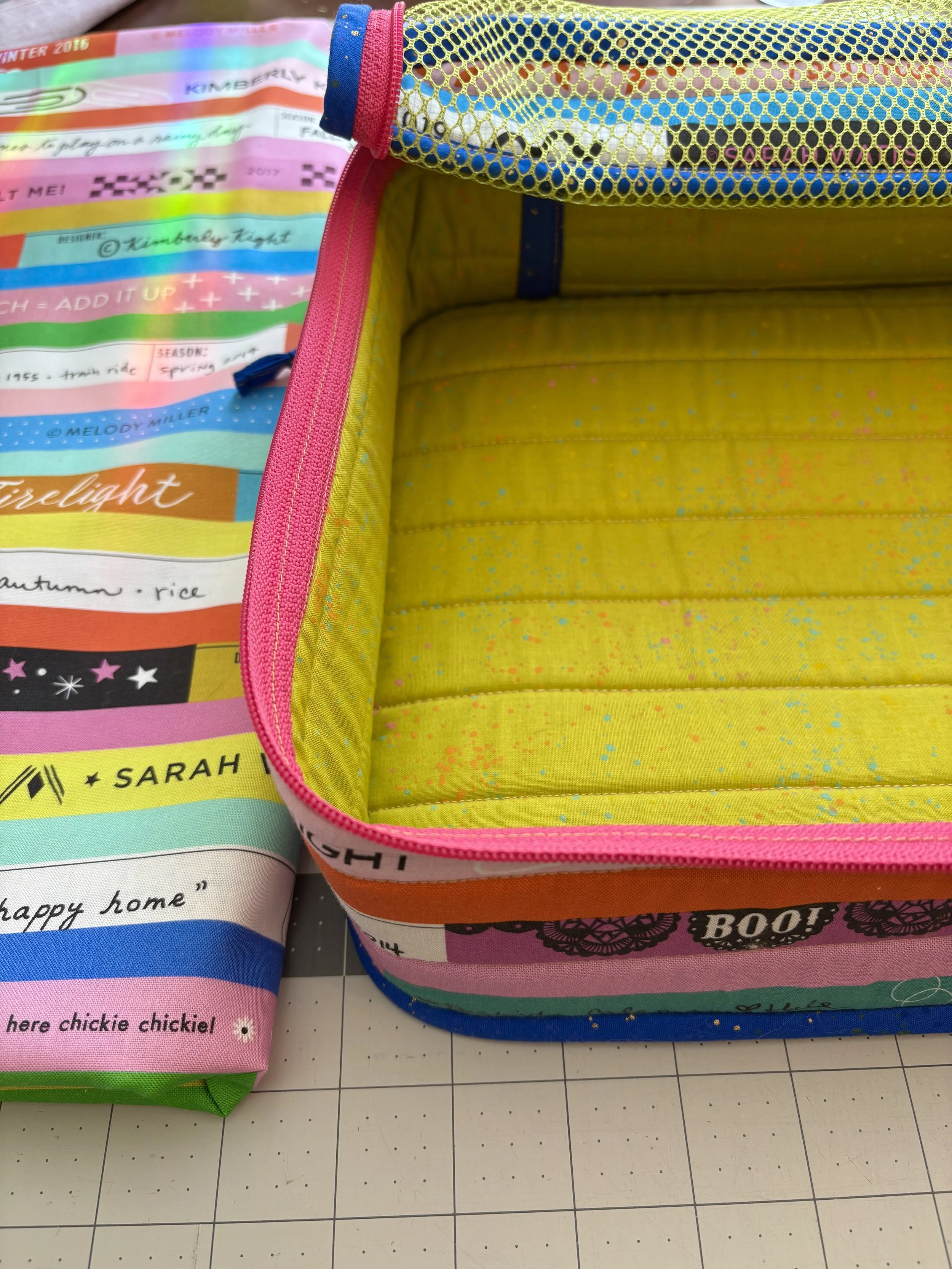 Here’s where I learned I’m terrible at following patterns. I started out making the large size packing cube, but I had so much shrinkage after quilting my pieces, that I was scared I wouldn’t have enough material to continue with the big size. So I pivoted and downsized all the quilted pieces for the medium size cube. If I had just been calm and read the whole pattern, I would have realized that there is a comfortable amount of overage, my shrinkage was nothing to worry about, and I could have moved forward with the large size.
